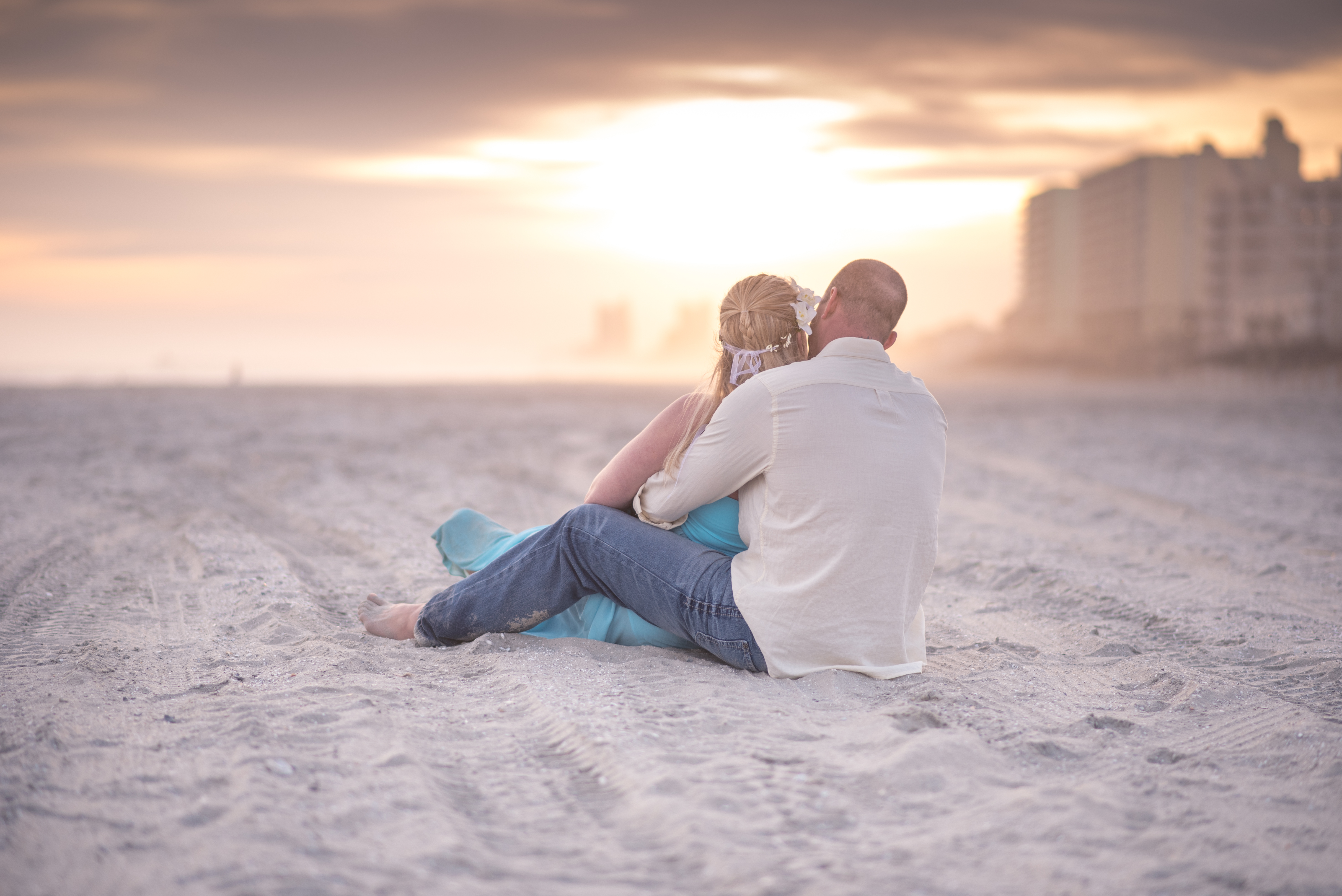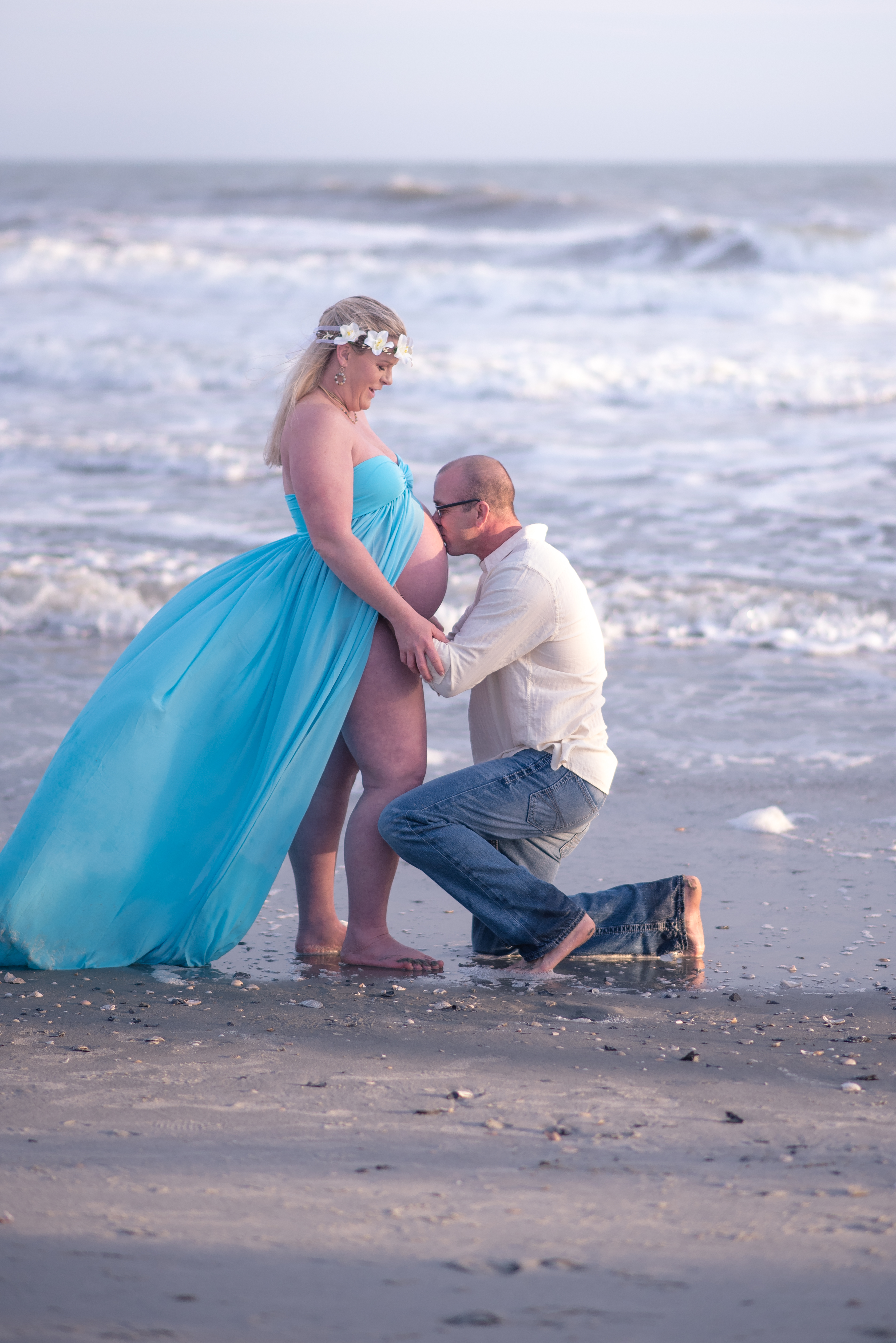 I was so excited when I received a call from Sarah Alexander who was interested in scheduling a maternity session. She and her husband, Tim, live in Loris SC, which is very close to North Myrtle Beach. She mentioned she liked the idea of having a pier in her portraits, so I suggested the Sea Cabin Pier, just past Cherry Grove, in North Myrtle Beach. We chatted for a while, discussing our ideas and how to incorporate them in her session. We decided on a sunset session and hoped for a warm February day on the Grand Strand. Luckily, it turned out to be a beautiful day, and just a little chilly on the beach. They brought some UNC booties and a book, which had been Sarah’s when she was little. We had a lot of fun capturing the details and telling their story.